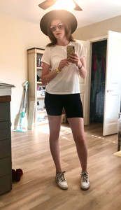 I think of the "22" music video when I picture Taylor in her "Red" era. I just so happen to have a lot of the components that make up this look, hat included! Unfortunately, my red sunglasses are not heart-shaped, but they're close enough! I made up for it with fuzzy red heart earrings. 😆